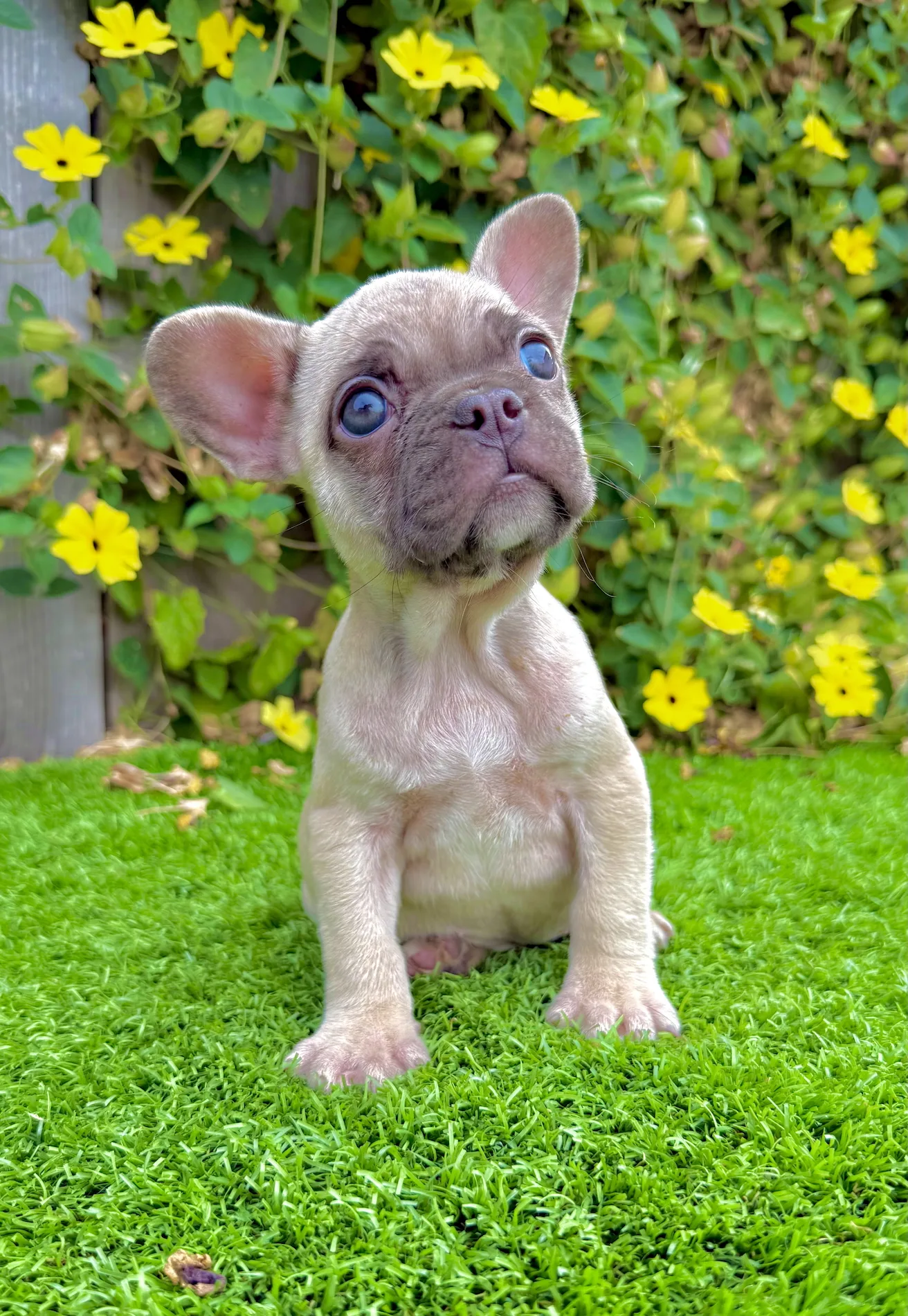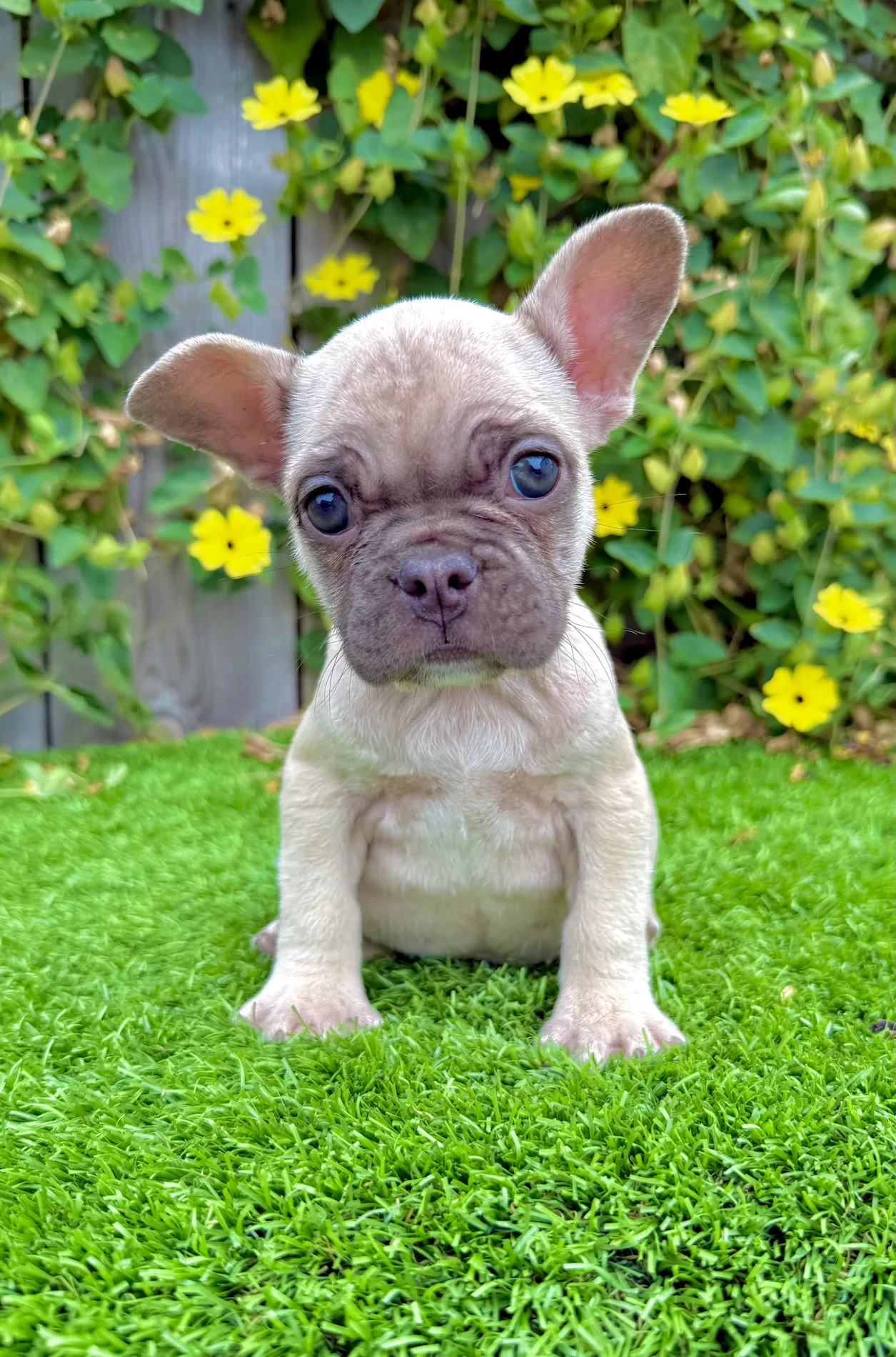 Mocha is a beautiful 8-week-old Chocolate Fawn French Bulldog with striking green eyes and a sweet, affectionate personality. Her soft coat, excellent structure, and rare coloring make her a total standout.