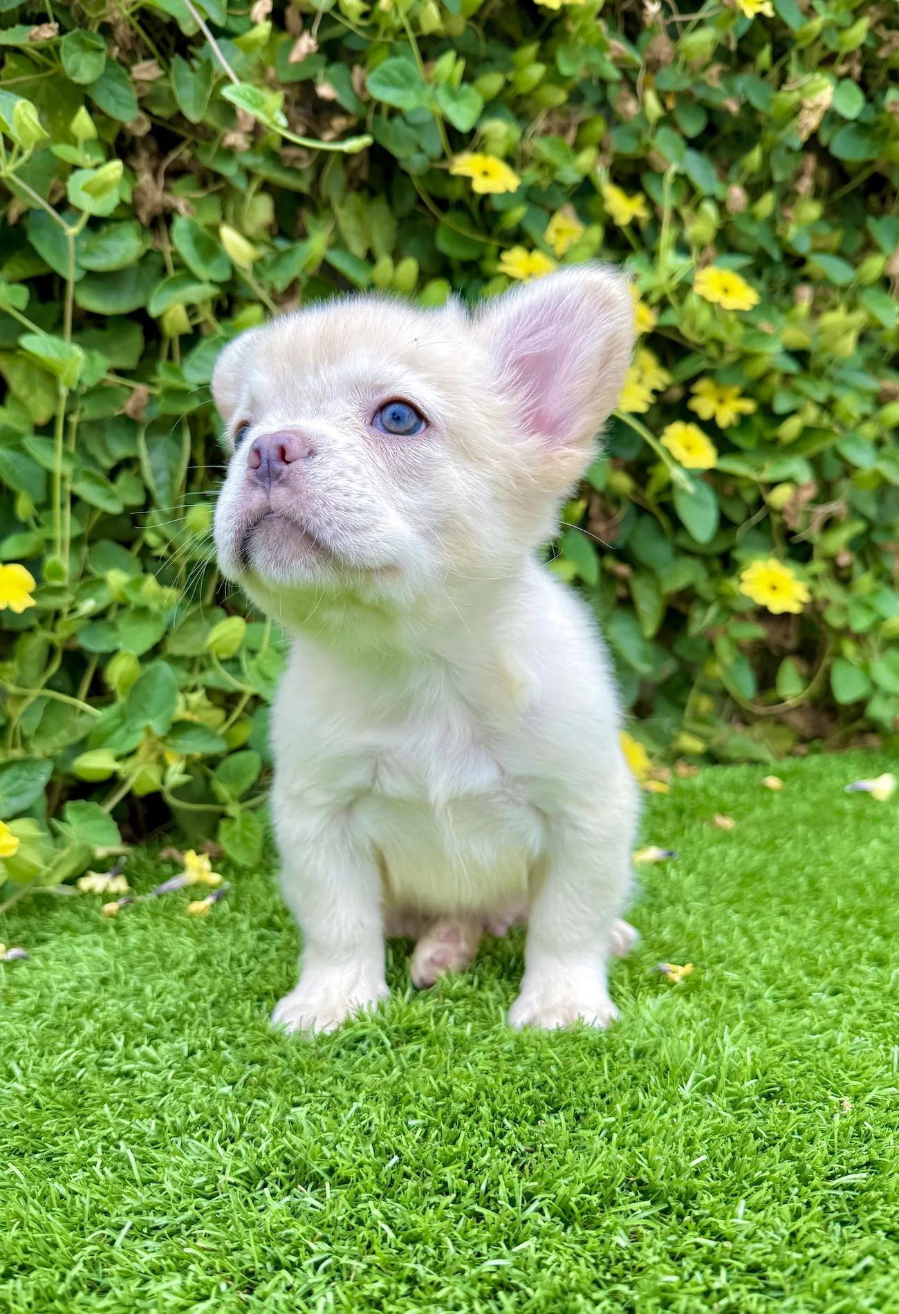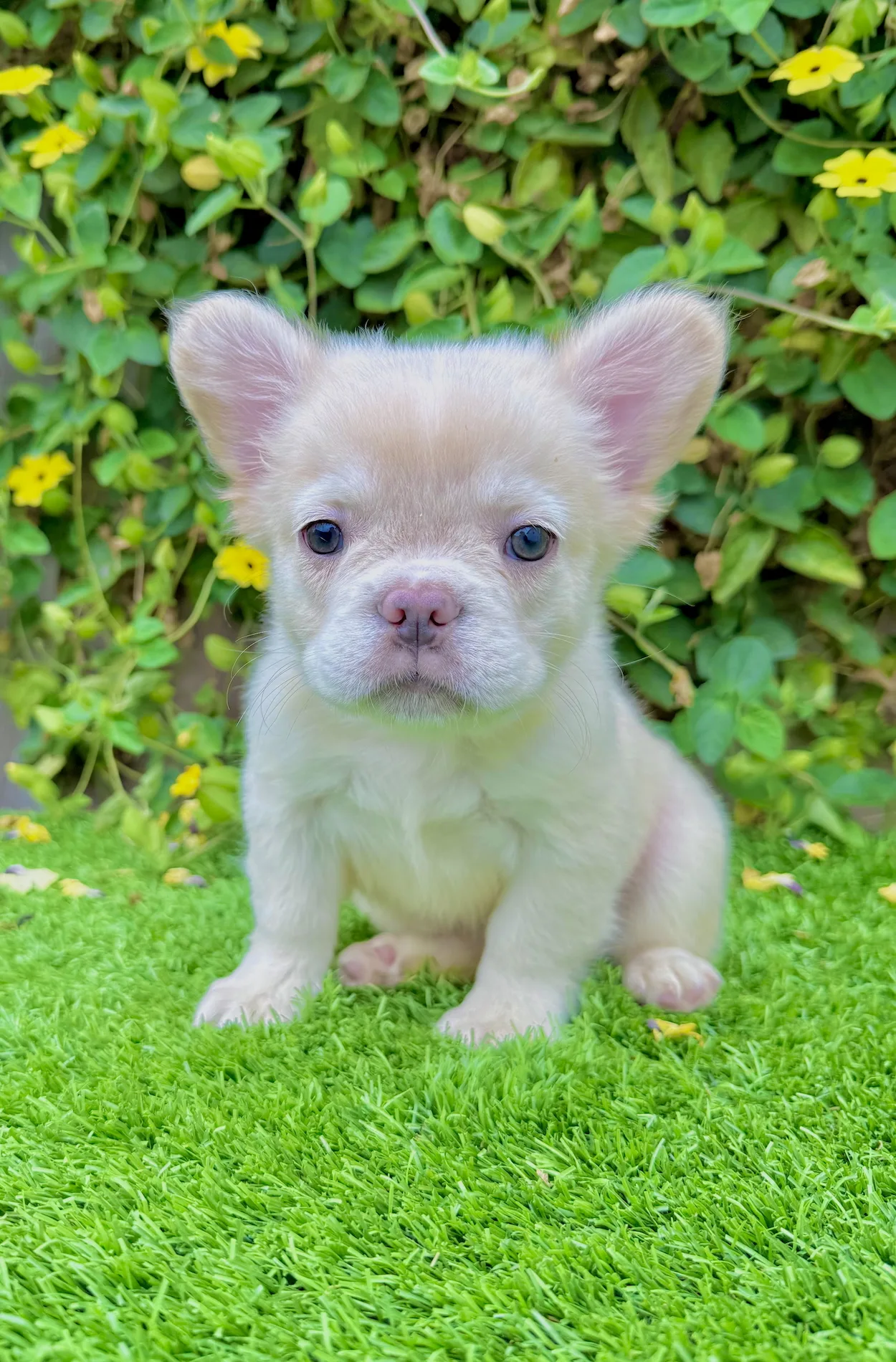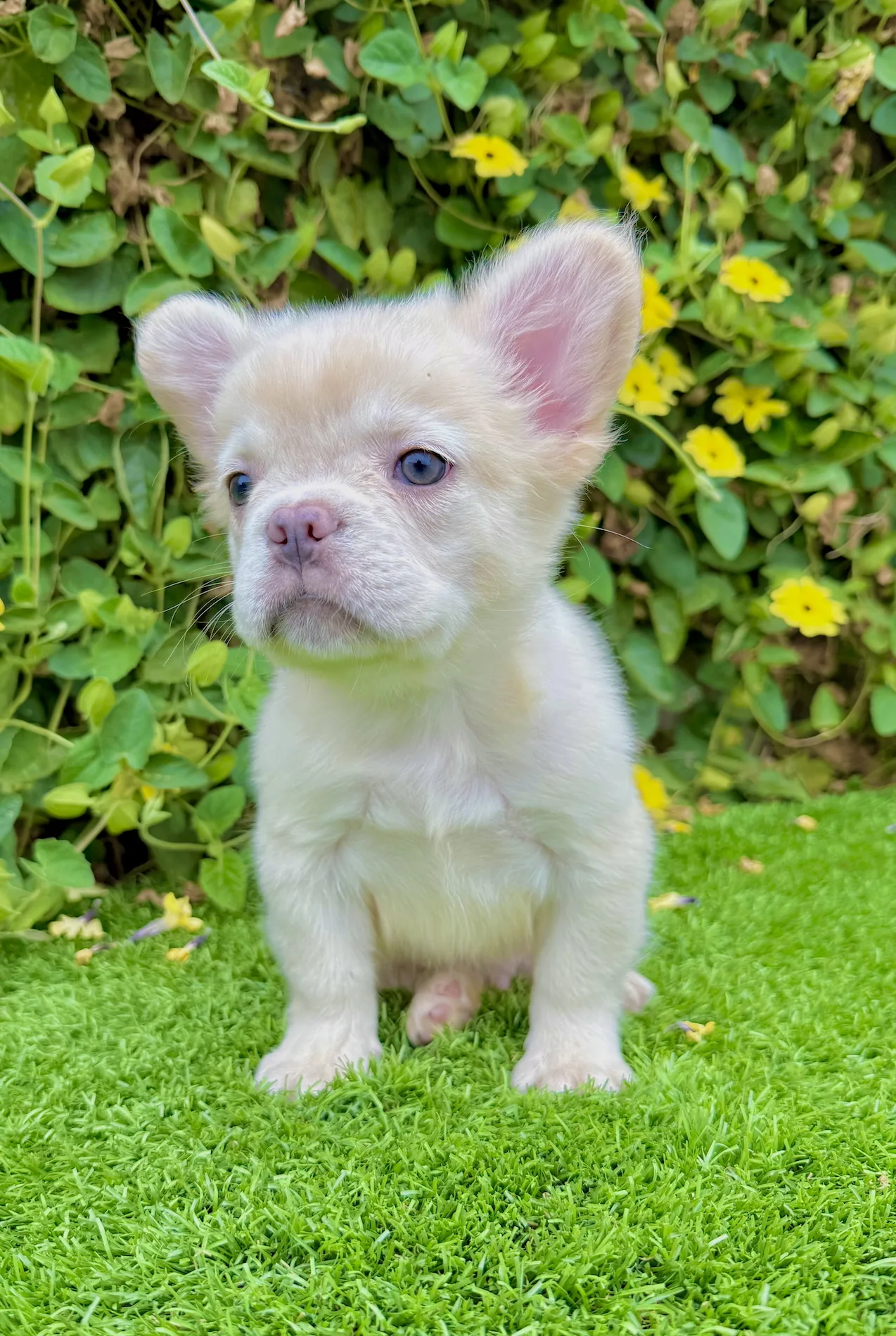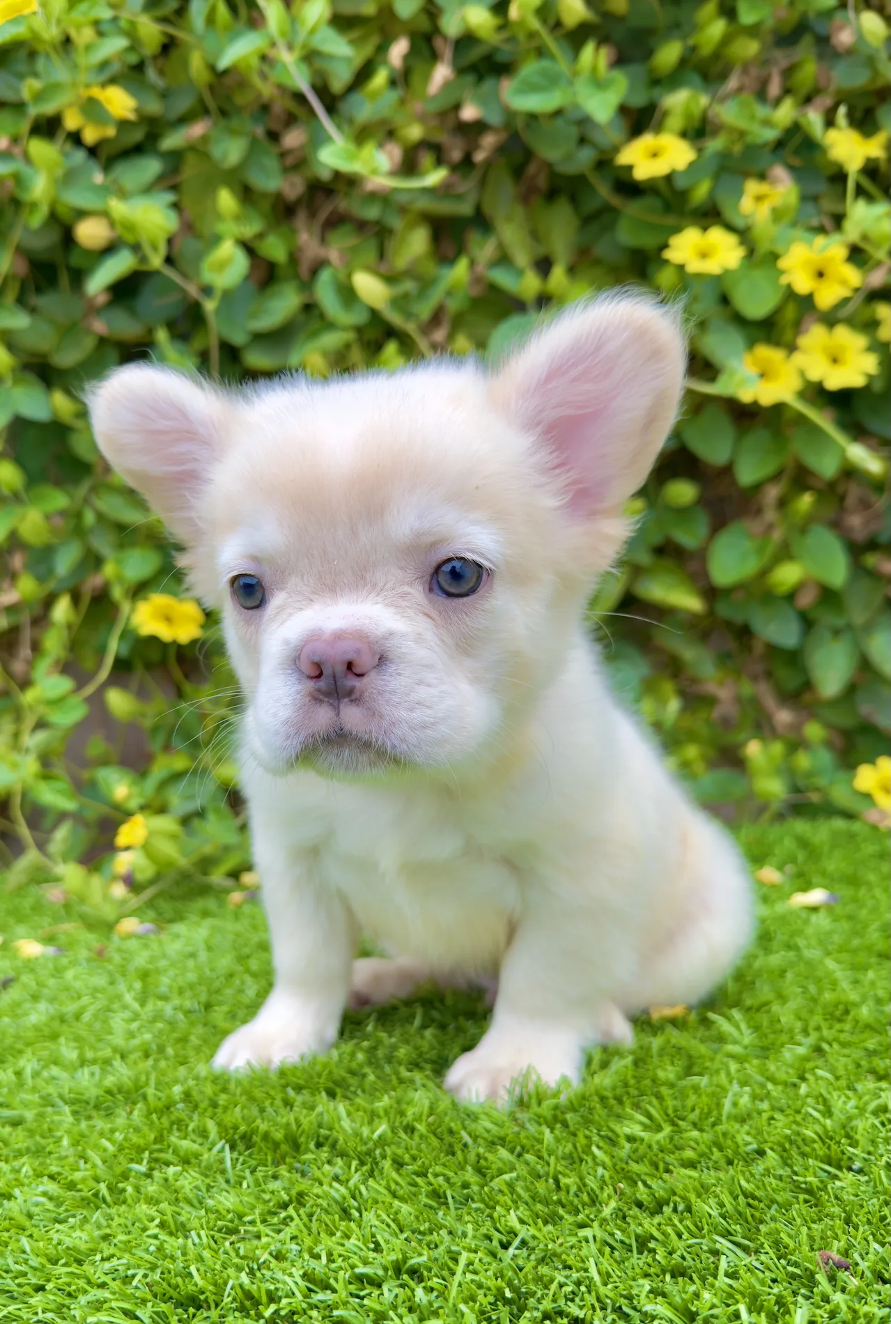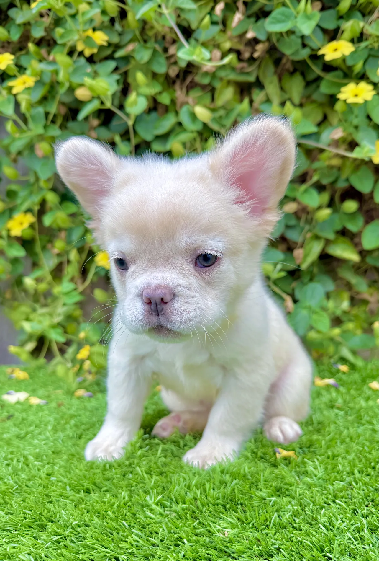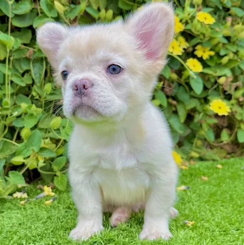 Frost is a stunning 8-week-old White Fluffy French Bulldog with icy green eyes and a thick, long-haired coat that gives him a rare and regal appearance. His gentle demeanor and soft snow-like fur make him the ultimate companion for families, Frenchie lovers, or anyone searching for something truly one of a kind.
