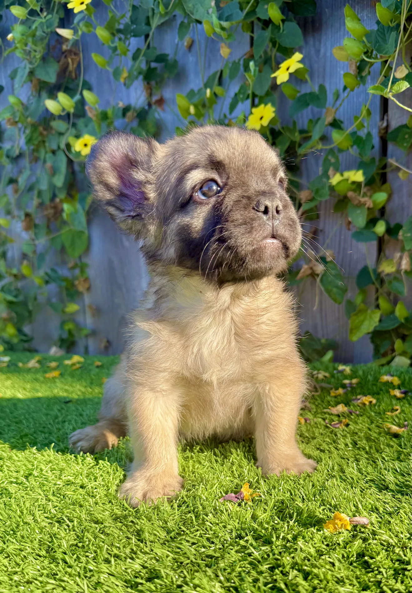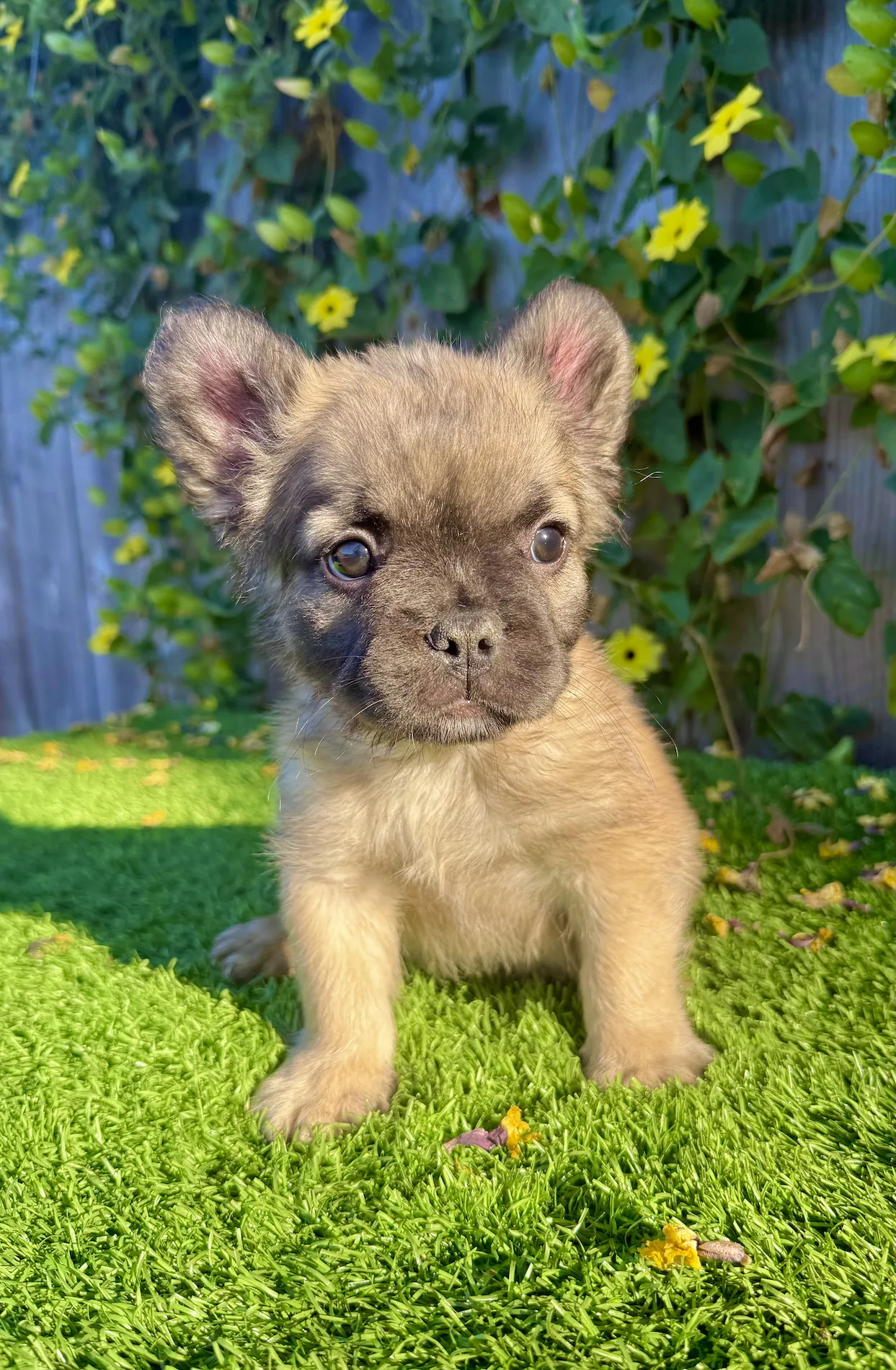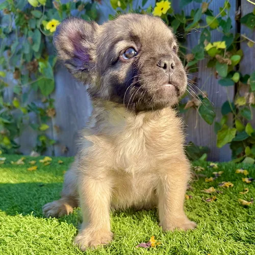 Prince is a handsome 9-week-old Fawn Fluffy French Bulldog with a plush long-haired coat and sweet, soulful eyes. With his calm temperament and thick, compact frame, he’s the perfect little gentleman to steal your heart and complete your home.