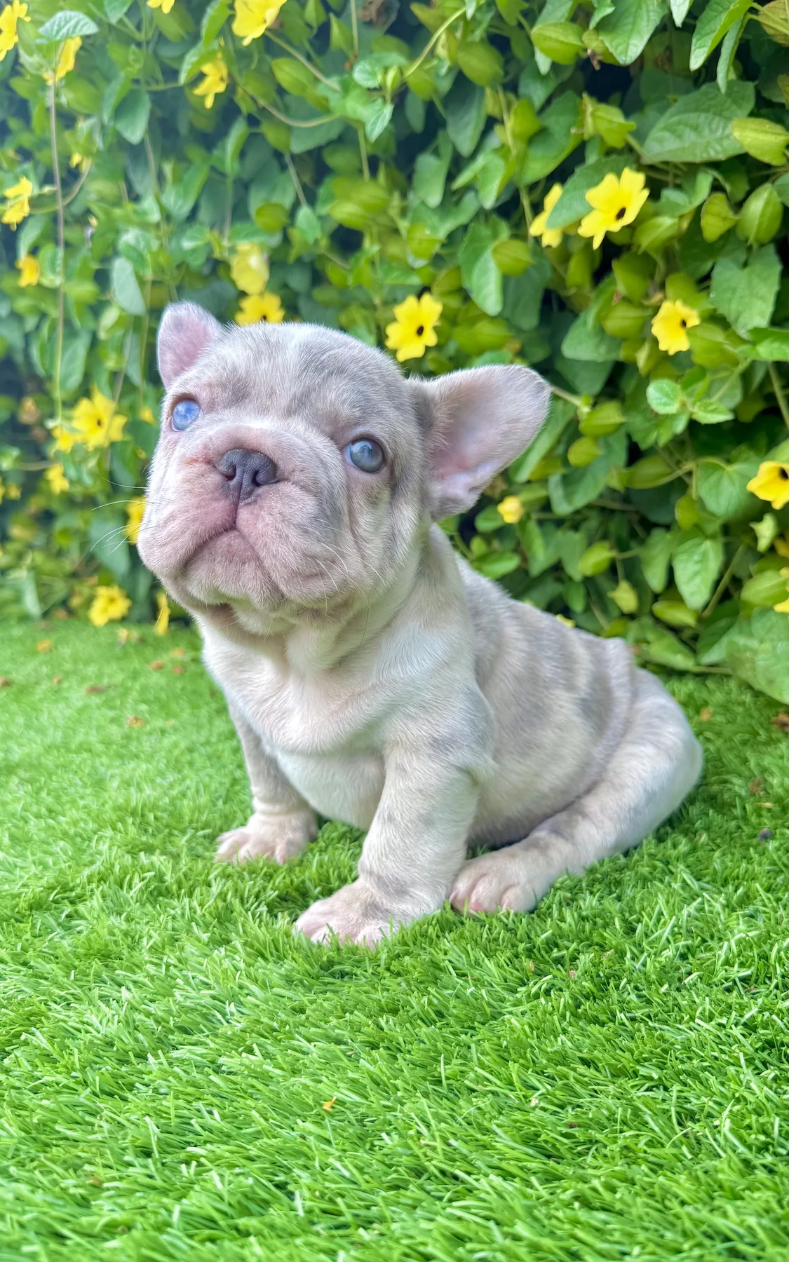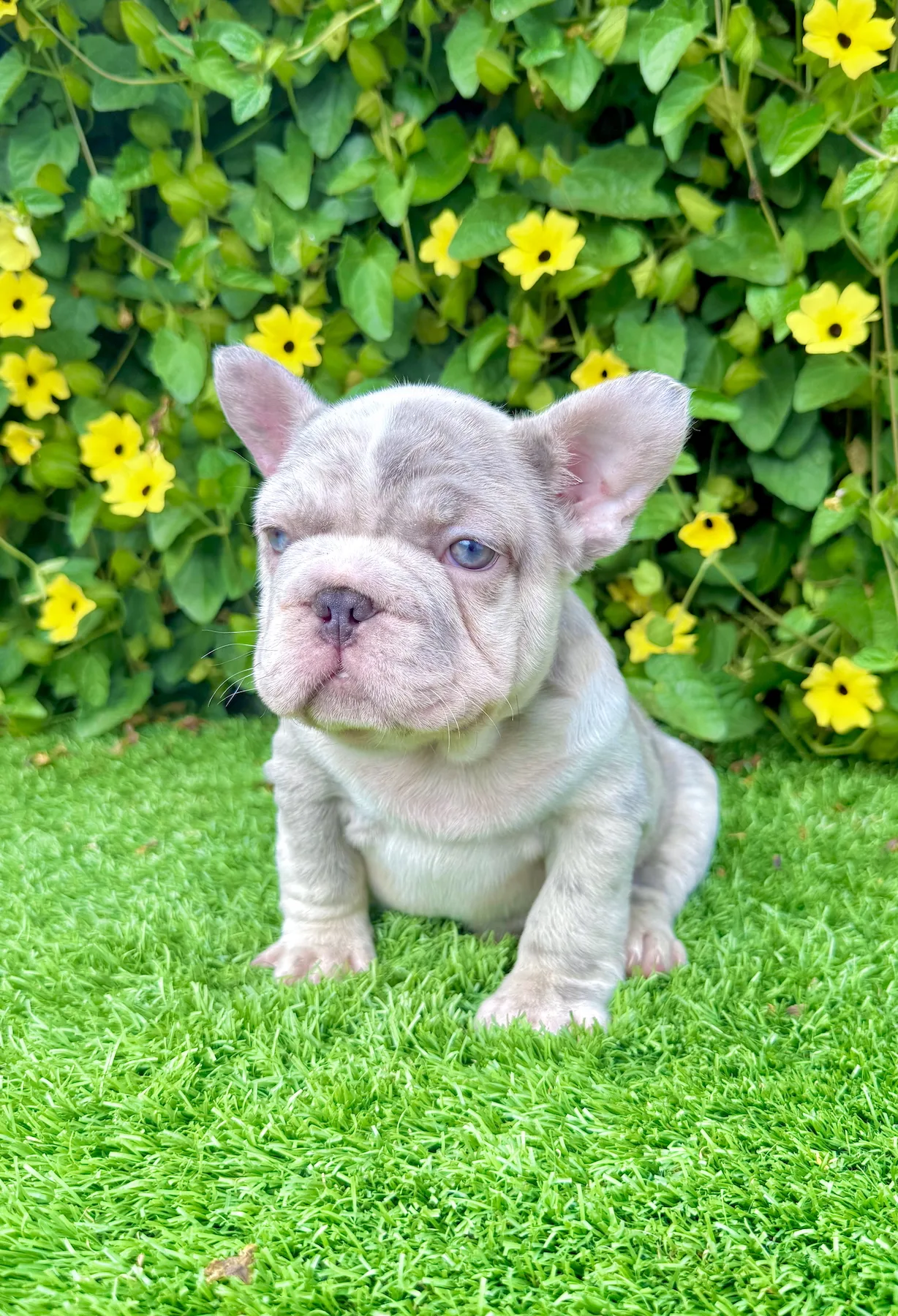 Meet Brutus — an absolutely stunning 8-week-old male Blue Merle French Bulldog with an impressive big rope and a sturdy, compact build. His icy blue eyes sparkle with personality, and his unique coat pattern is one-of-a-kind. Brutus is confident, playful, and already showing the structure and temperament of a top-tier Frenchie.